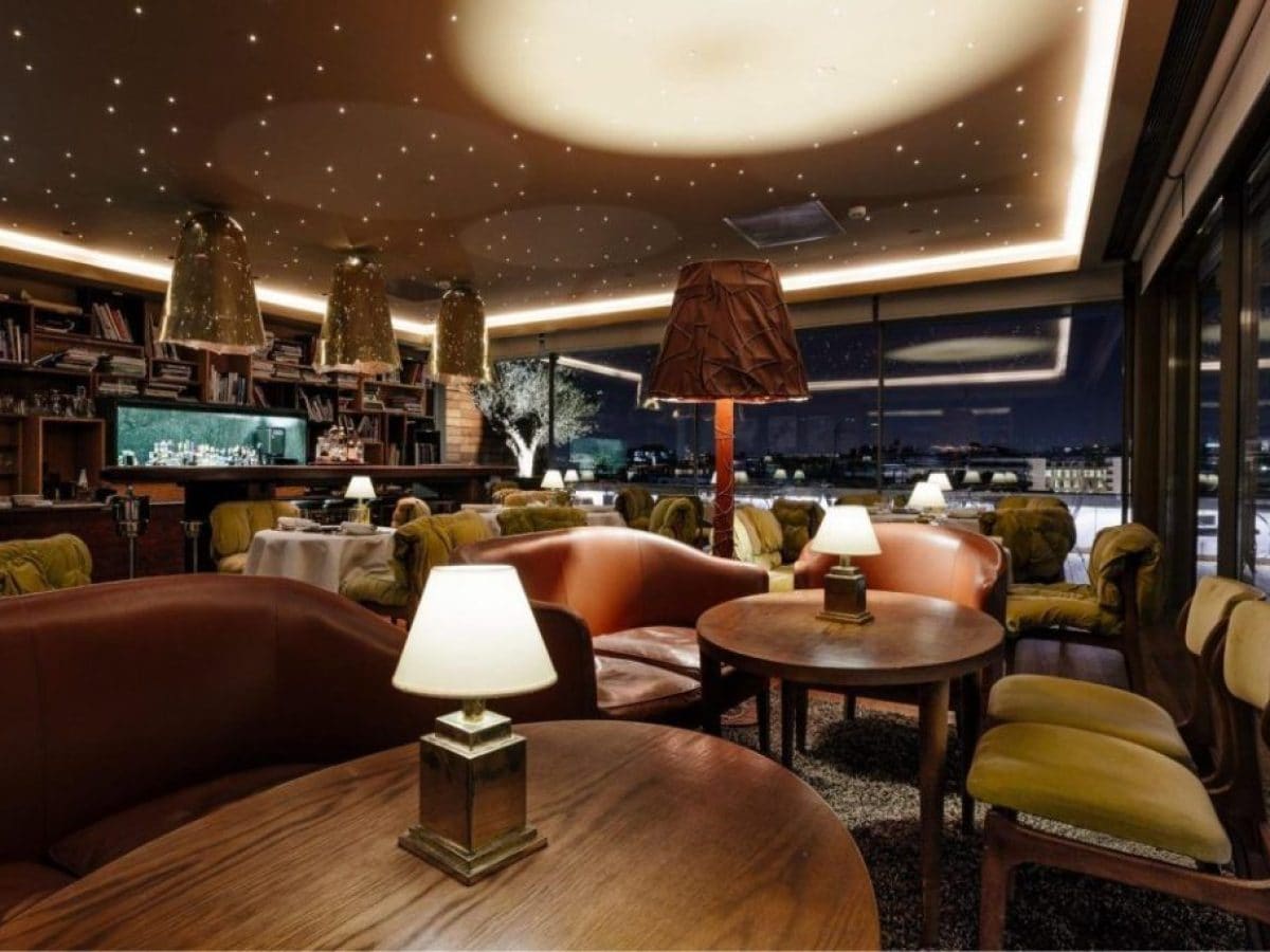 Το δείπνο εκτυλίσσεται με φόντο τη φωτισμένη Αθήνα, πίσω από τις εμβληματικές μεγάλες τζαμαρίες του εστιατορίου.